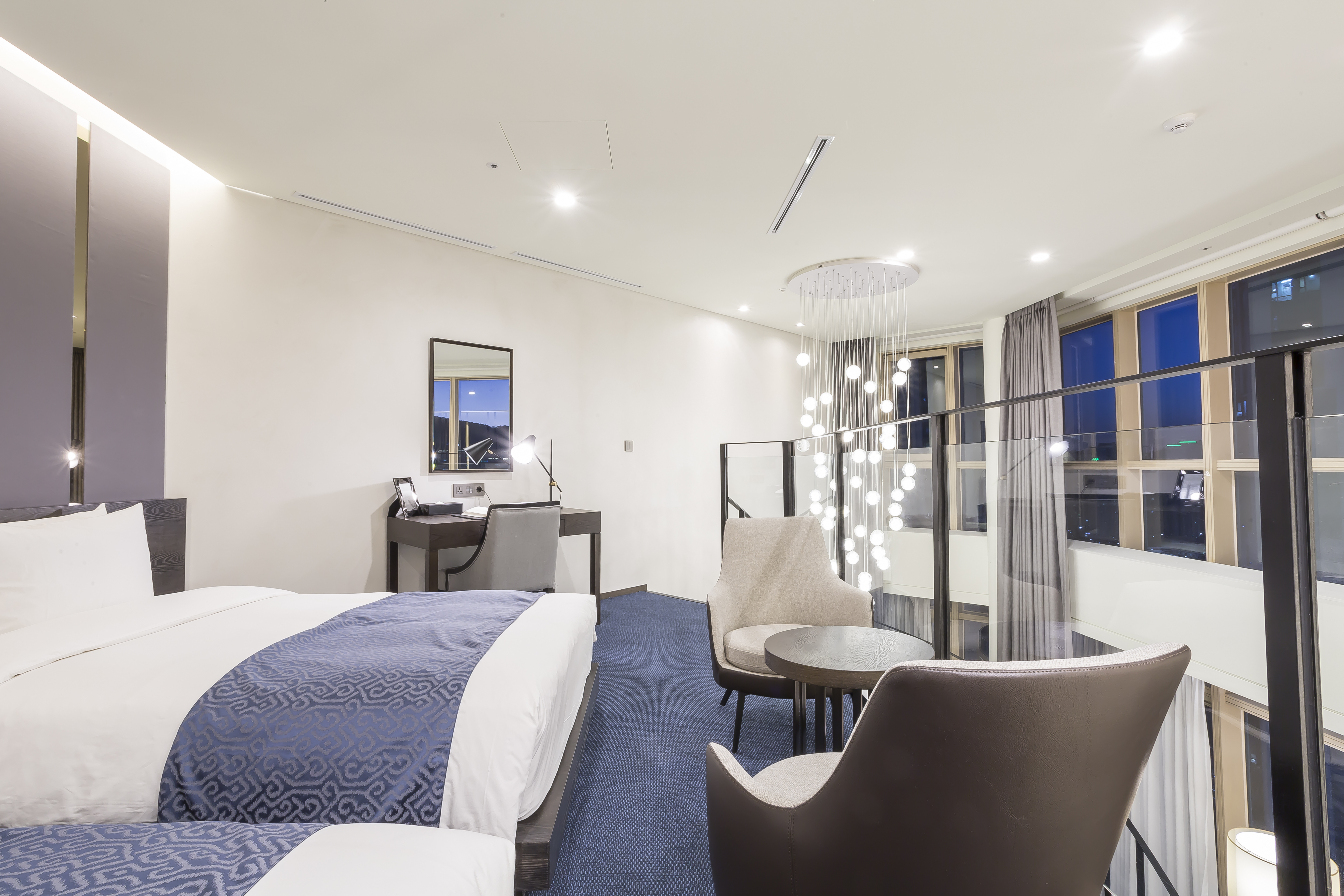 프리미어 스위트복층 구조인 프리미어 스위트는 킹사이즈 더블베드 하나, 세미 더블베드 하나로 구성되어 있으며, 최상의 룸 컨디션으로 여러분의 여행에 편안함과 안락함을 제공합니다.